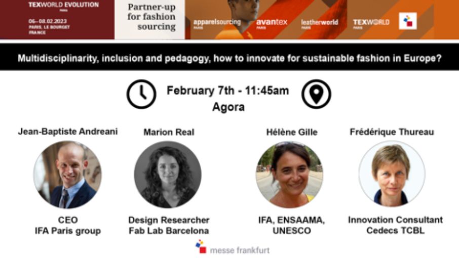 Table ronde Avantex du 7 février à 11h45. A partir des deux projets Herewear et shemakes, nous témoignerons dans cette table ronde de l’innovation et de certains de ses drivers, comme la pluri-disciplinarité, l’inclusion et la formation tout au long de la vie. Rejoignez-nous en présentiel ou en post-séquence en virtuel.